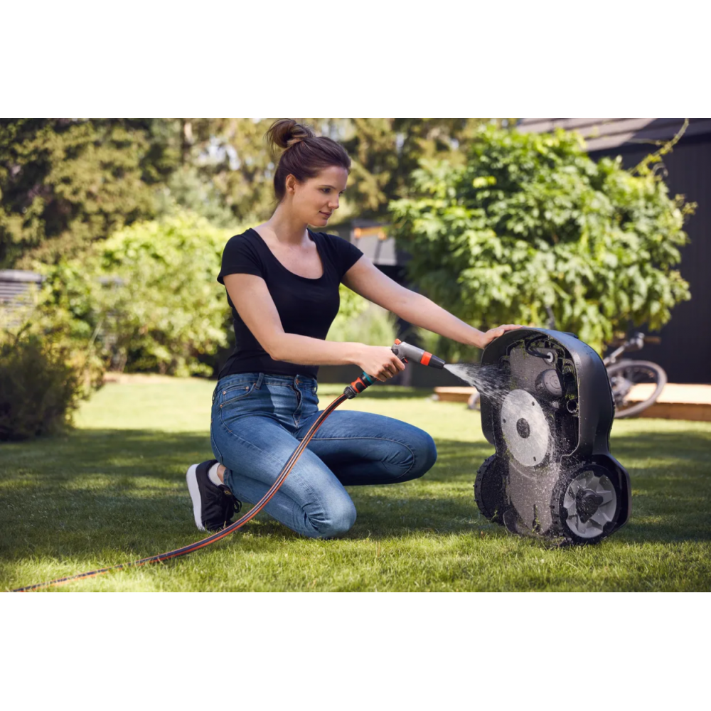 Facile à nettoyer, il est équipé d’une protection antigel qui suspend automatiquement la tonte en cas de gel, ainsi que d’une minuterie adaptative ajustant les temps de tonte selon la saison afin de préserver la qualité du gazon.